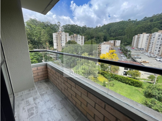 Venta de apartamento moderno con un área de 60 mt, cuenta con 2 habitaciones, 2 baños, balcón, cocina integral abierta en mármol, con barra tipo americana, piso en porcelanato en la zona social y las habitaciones con piso en madera laminada. Cuenta con parqueadero.